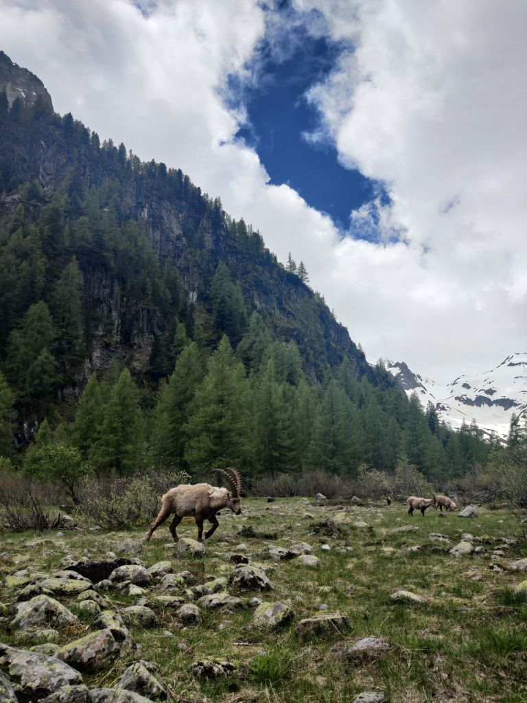 Luckily, we got carried away walking up the valley and overshot the climb. I left my bag with El and ran down the valley to try and find it. This was lucky because when I made it back towards El, there was a pack of chamois grazing around. Squatting low, they didn’t seem fazed by us at all.