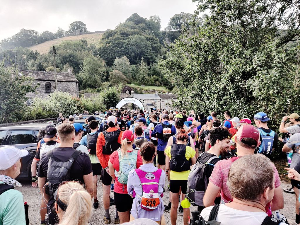 We set off from Castleton, heading up the road, around the quarry, and down to Bradwell. The first few kilometers were very busy since participants from the 33, 50, and 100-mile events were all running the same section.