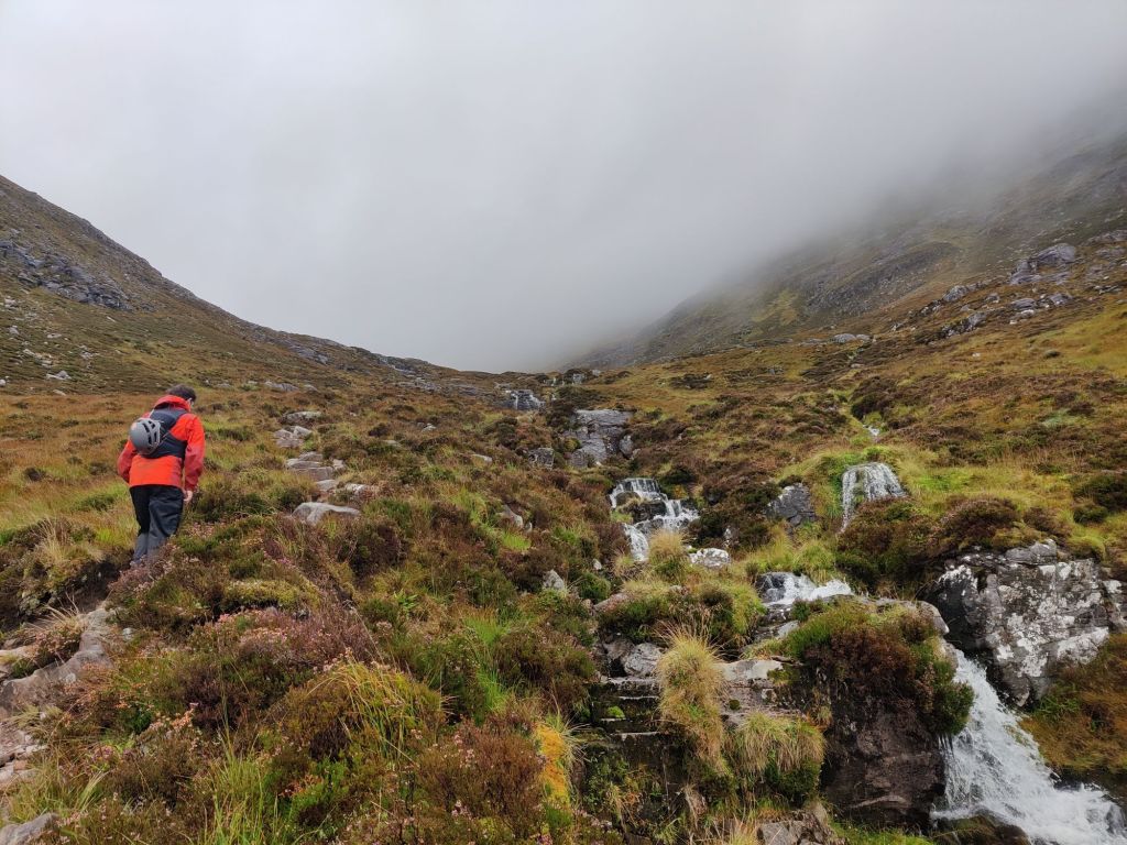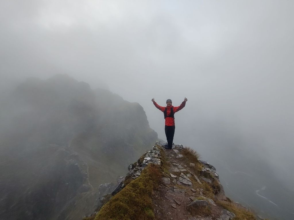 From the summit, we continued along the path until we reached the Liathach traverse scramble. It’s a Grade 2 on impressive rock—or at least it would have been if we could see it…