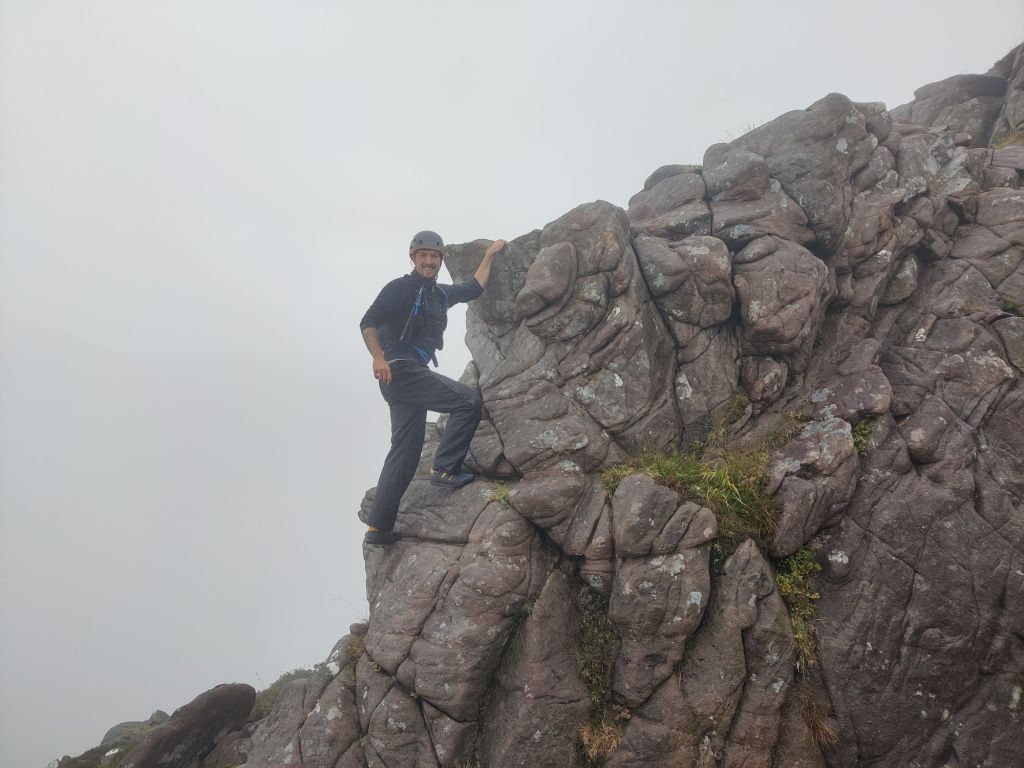 The scramble was good, and we caught glimpses of the loch below through breaks in the clouds.