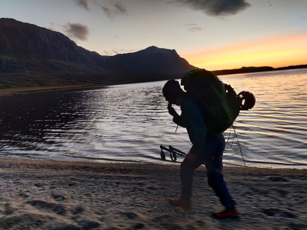 The gas ran out, and then the midges came. Not just a few but thousands. Despite the Smidge (midge repellent), these guys did not give a fuck and still landed on whatever skin they could find. They swarmed around us and wouldn’t leave. With no gas, we couldn’t cook dinner, so we had to let the noodles soak. We paced around the beach to try and keep the midges at bay, but stop for a second, and they’d swarm around us.