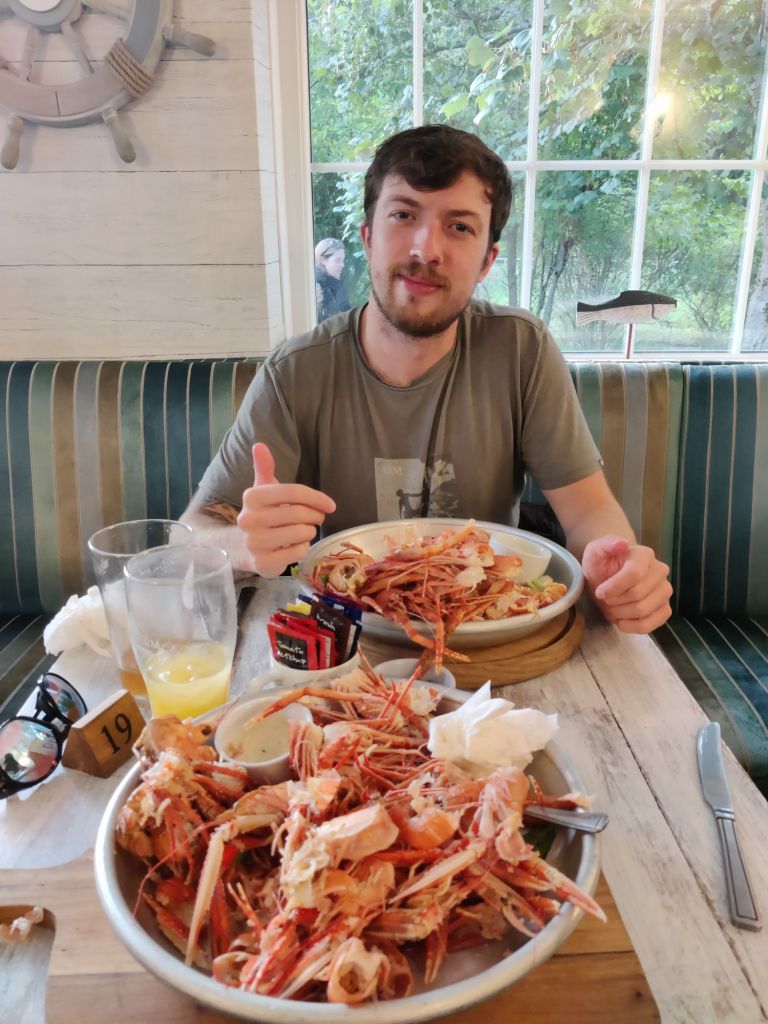 Time slipped away from us quickly, and there was a ceilidh in a local village that we wanted to go to, but we still had to eat. We found a pub that served local seafood and ordered the seafood platter, which consisted of langoustines and squat lobster. Incredibly fiddly and left us stinking of fish before our ceilidh debut performance, but it was delicious.