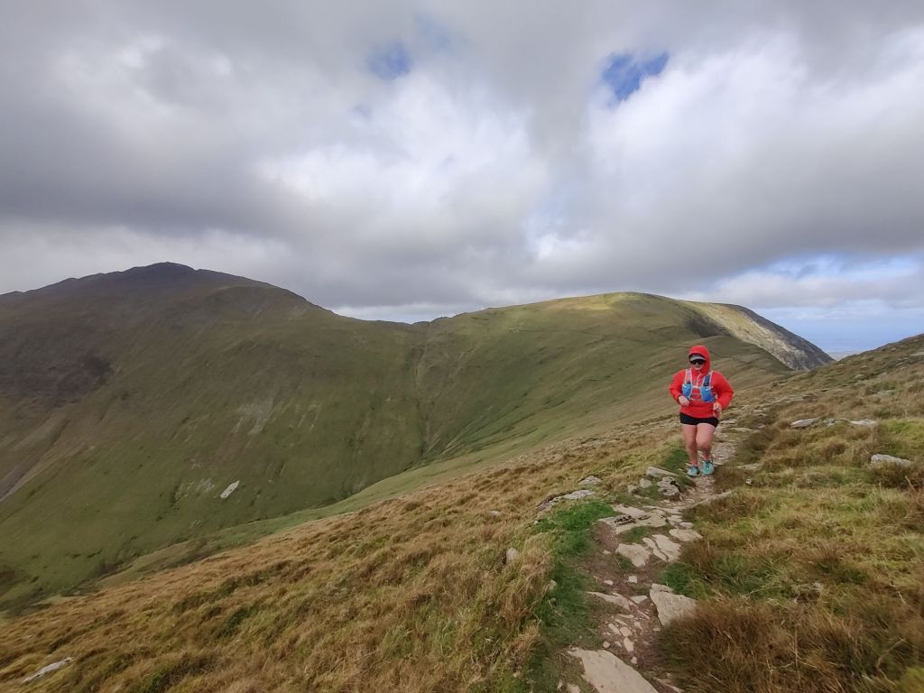 We summited the first mountain, then ran over to Y Garn and down towards Llyn y Cwn. At this stage, we started seeing a lot of runners taking part in the GB Ultra races (80 km & 160 km). We made the gruelling ascent up the scree slopes to Glyder Fawr and ran over past Glyder Fach, descending the miner’s track to the A498—still seeing runners!