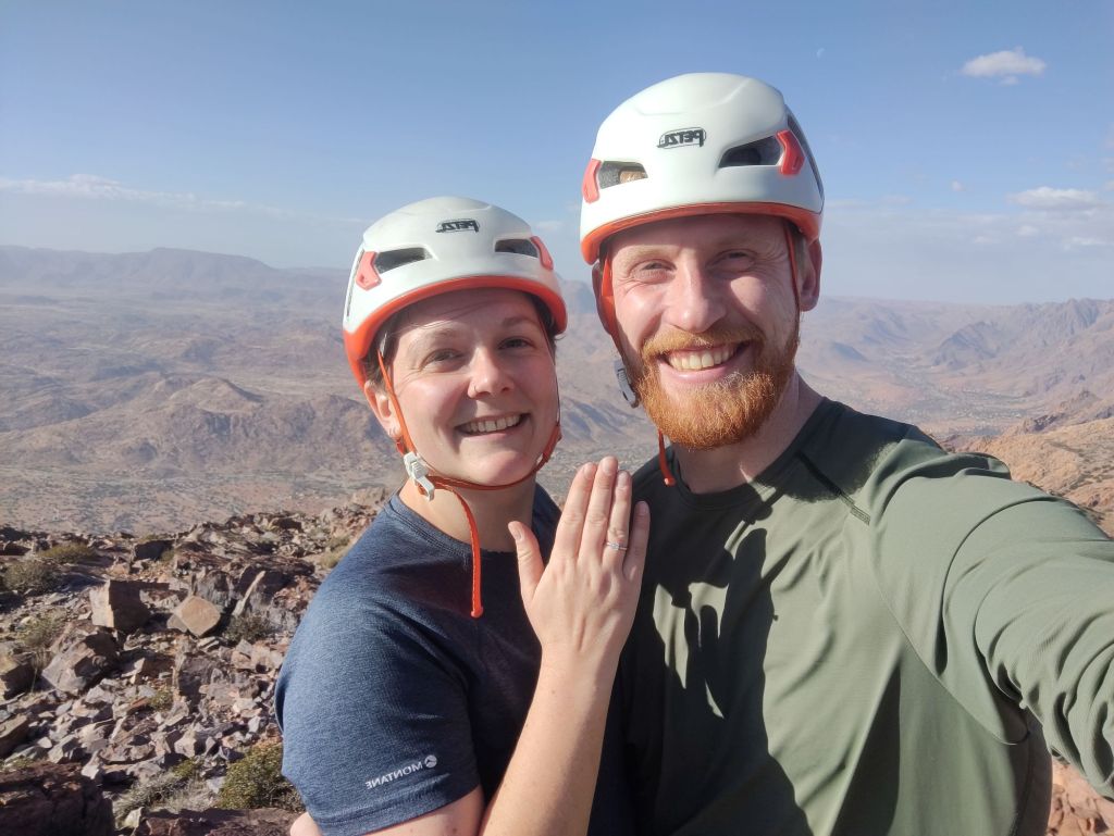 We scrambled to the summit with such beautiful evening lighting. I balanced my GoPro on a rock to take a photo of the pair of us. I’d actually set it on video. After standing smiling like chuffs waiting for a “10 second countdown”, I turned to El, dropped to one knee and asked her to marry me. After a huge amount of ‘oh my gods’ and ‘are you serious’s’ she finally said yes. This was the absolute perfect start to our Moroccan holiday, and writing this, 3 days later, I’ve still got a smile on my face!