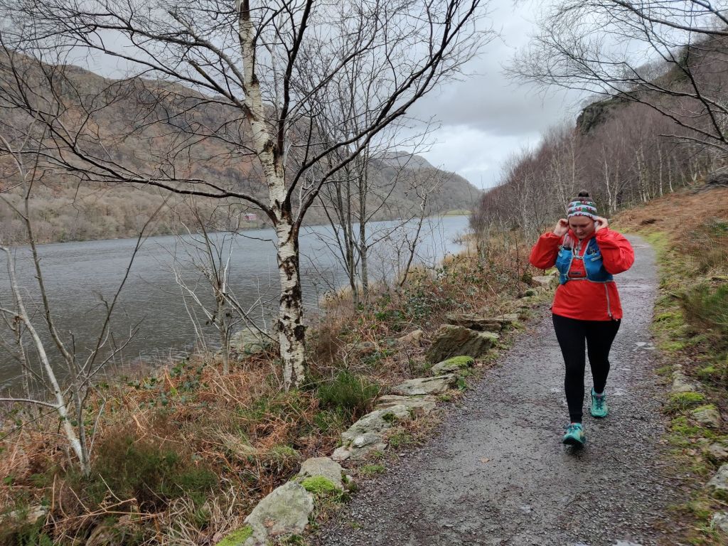 The weather had been miserable for days, with a storm rolling through North Wales. We decided to go for a run, but wanted to stay on the road, as best we could. We parked above Bethania, ran down the road to Llyn Dinas and down the water- logged footpath to Bedgellert. The run down the gorge was ace! The water levels were very exciting to run along next to! We continued on the road to Nantmoor, and continued up the back road to make it a round loop to the car. Not our best day out ever, but given the weather I was pleased we got this much done! The most surprising thing was the amount of other people we saw out in the torrential rain… As El said ‘Nowt like a bit of Christmas cheer to get people out for a walk’….