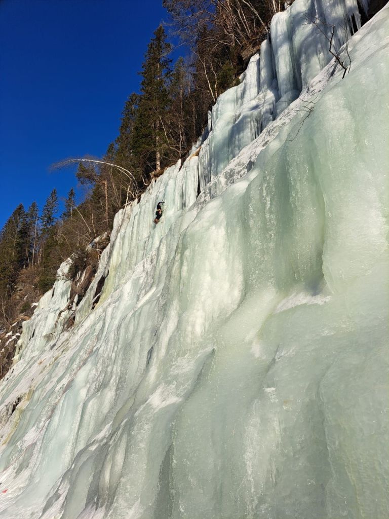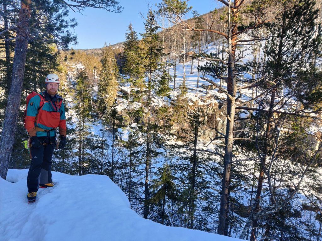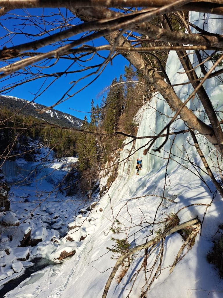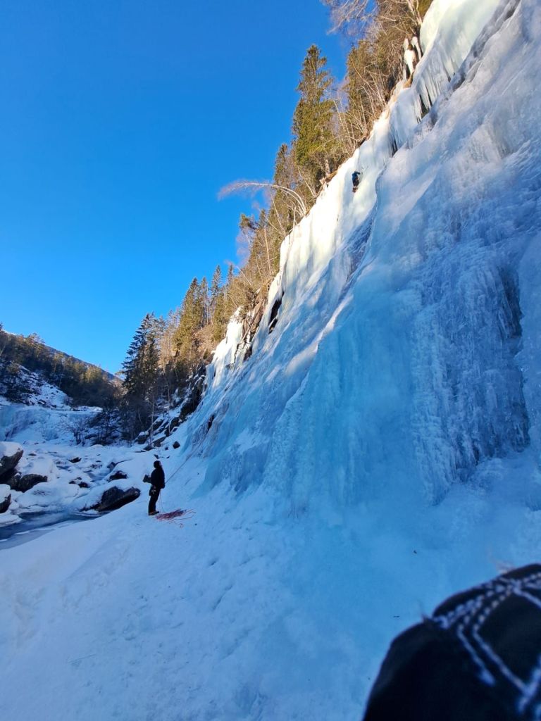 We found a crag called Alset Ice Crag, only a 20-minute drive from the cabin. Because it’s a bit further from Rjukan, it was pretty quiet — not many people make the trip out there.