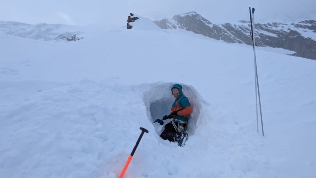 It took hours. We were at 3,300m, both feeling fit, but even so, it was relentless. After three solid hours of digging, we’d carved out a proper snow hole — with a beautifully sculpted ceiling. Shame we didn’t put as much effort into the floor…