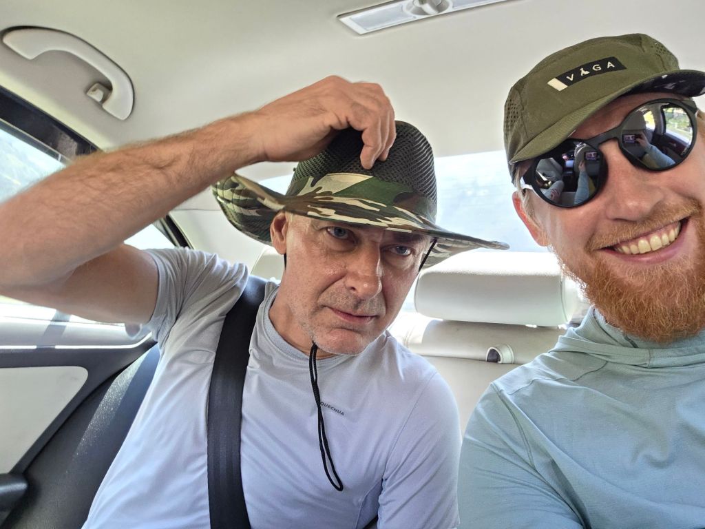 Eventually, Radi emerged, ready to leave. We got in the taxi — only for him to suddenly decide he needed a new hat. Pawel and I waited patiently in the car while he tried on what felt like the entire shop. Finally, hat secured, we made it to the church and left the car behind.